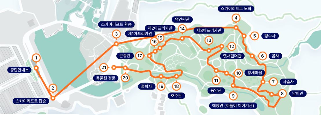 아래는 서울대공원에서 추천하는 아이와 함께 하는 추천 코스입니다.